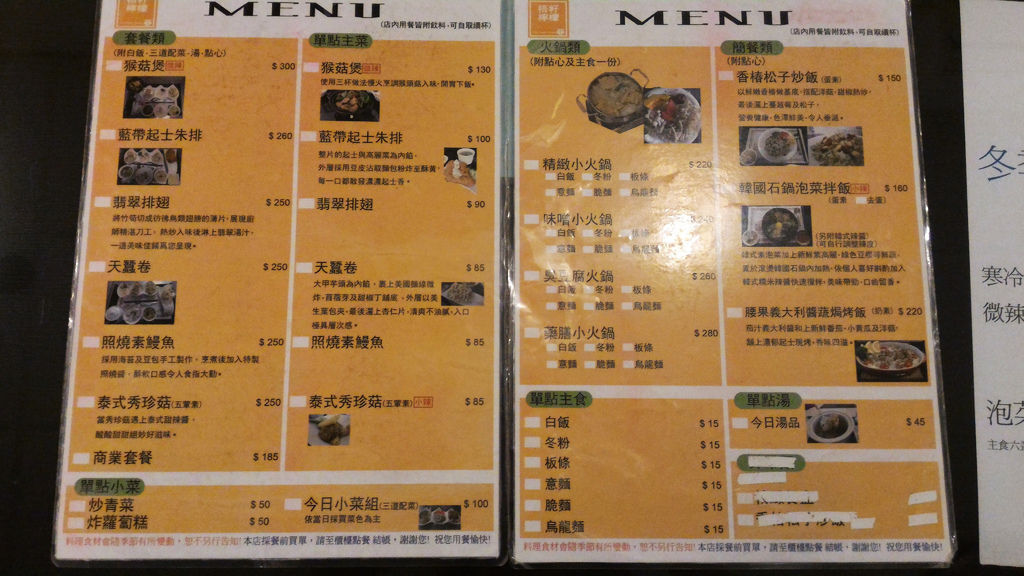 ▲ 菜單